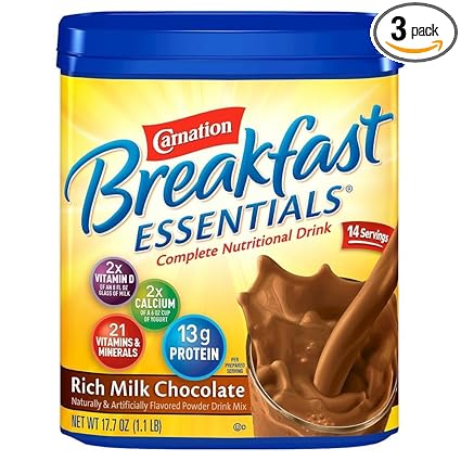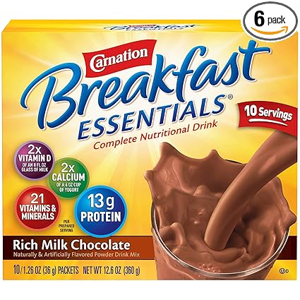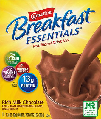 Carnation instant breakfast powder. Key benefits Balanced Nutritional Drink Mix thats great for breakfast. Carnation Breakfast Essentials High Protein Nutritional Drink Mix. Carnation Breakfast Essentials Original Nutritional Drink Mix is quick easy delicious and nutrient-packed with 21 vitamins minerals plus 13 g of protein per prepared serving.